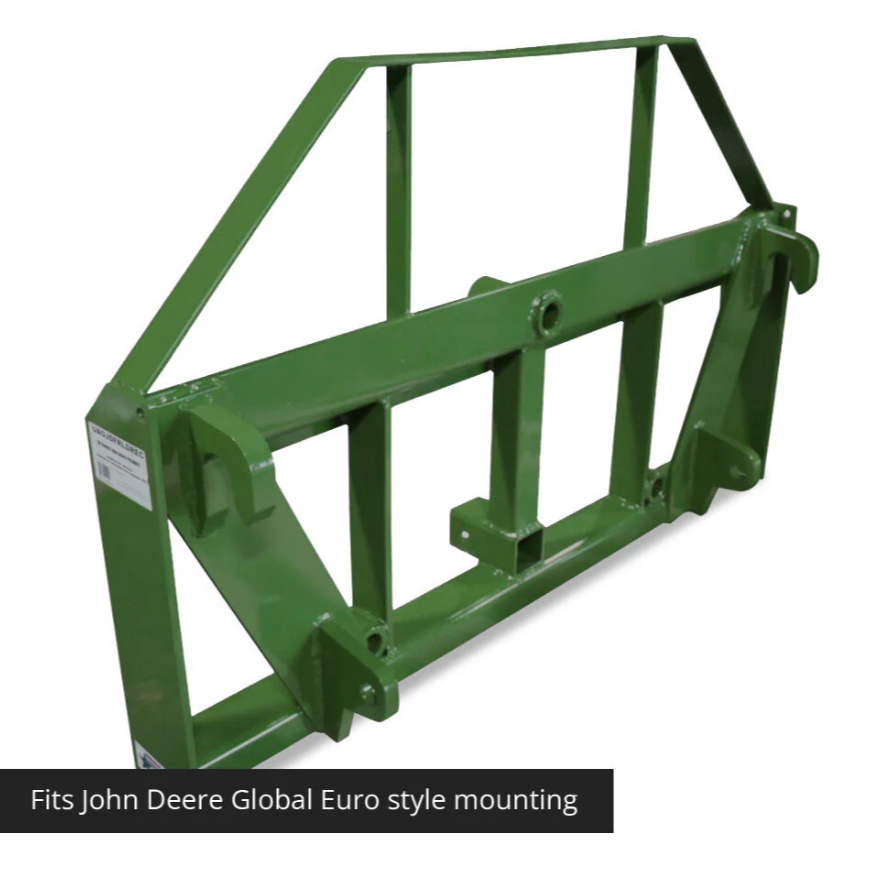 Cette lance combinée de palettes tout-en-un fourre est conçue pour s'adapter aux tracteurs John Deere équipés du système de montage de style mondial, également connu sous le nom de système de montage Euro.