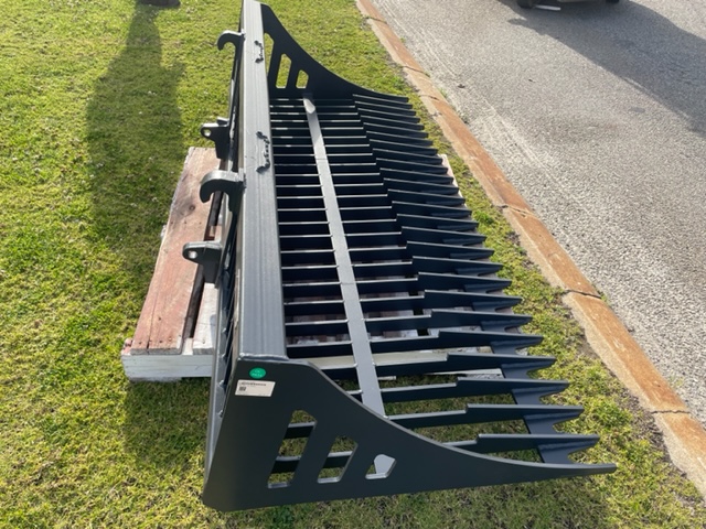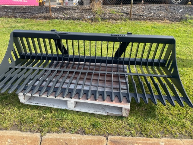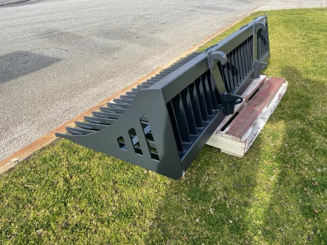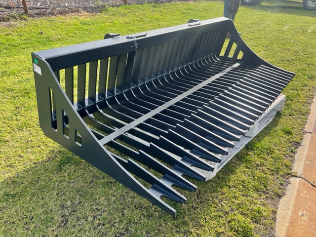 The 6 FT Fine-Grade Skeleton Rock Bucket quickly picks up rocks and debris while letting dirt sift through.